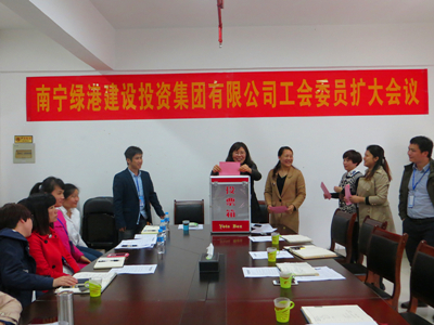 當(dāng)天下午,綠港集團(tuán)全體職工代表參加了工會(huì)委員擴(kuò)大會(huì)議,通過了工會(huì)主席、工會(huì)副主席選舉辦法,經(jīng)過在職工會(huì)委員投票,全票通過工會(huì)主席、副主席候選名單。通過選舉,綠港集團(tuán)工會(huì)主席由集團(tuán)公司總經(jīng)理助理黃麗琴擔(dān)任、工會(huì)副主席由集團(tuán)公司辦公室副主任蒙歆芬擔(dān)任。
