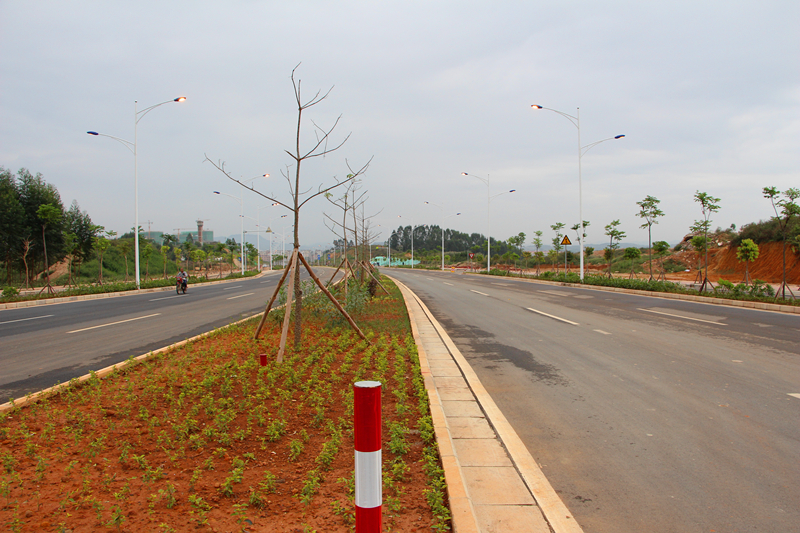 該項目自2013年5月10日開工建設以來,經(jīng)開區(qū)管委會領導高度重視建設進展情況。2015年7月,管委會專門成立了光明路現(xiàn)場指揮部,以經(jīng)開區(qū)黨工委副書記覃傳財為指揮長,管委會副主任廖勇、楊貴山,副調(diào)研員劉忠平為副指揮長,建設局、綜治辦、征地辦、綠港集團為成員的領導小組,多次組織召開現(xiàn)場協(xié)商及工作推進會議,并進駐現(xiàn)場辦公,以強有力的措施解決順利解決了管線遷移、征地拆遷等各種困難。