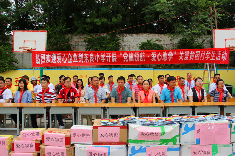 5月31日,“六一”國際兒童節(jié)前夕,由南寧市委組織部、市兩新組織黨工委協(xié)調(diào)經(jīng)開區(qū)、高新區(qū)兩新組織黨工委主辦的“黨旗領(lǐng)航·愛心助學(xué)”關(guān)愛貧困村學(xué)生活動(dòng)在馬山縣百龍灘鎮(zhèn)龍昌小學(xué)和喬利鄉(xiāng)東良小學(xué)舉行,綠港集團(tuán)黨委積極加入此次愛心助學(xué)行列。當(dāng)天,綠港集團(tuán)黨委連同經(jīng)開區(qū)、高新區(qū)兩新組織黨組織及個(gè)人、企業(yè)一起,共同為龍昌小學(xué)、東良小學(xué)640名學(xué)生捐贈了校服1200套、文具700套,以及運(yùn)動(dòng)器械、戶外移動(dòng)音箱以及飲料、食品等愛心物資一批,價(jià)值約15.8萬元。