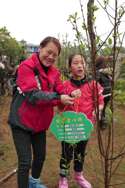 當(dāng)天,綠港集團(tuán)還舉行了植樹護(hù)綠活動(dòng)。在細(xì)雨紛飛中,家長和孩子們一起動(dòng)手,分工協(xié)作。大家栽得認(rèn)真,干得賣力,揮鍬鏟土、挖坑、栽樹、蓋土、澆水,各個(gè)環(huán)節(jié)銜接有序,配合默契。整個(gè)植樹活動(dòng)現(xiàn)場熱火朝天,歡聲笑語不絕于耳。經(jīng)過一個(gè)多小時(shí)的揮汗奮戰(zhàn),上百棵小樹苗整齊的“站”在了綠港·國際中心桃樹林中。放眼望去,樹苗迎風(fēng)挺立、搖曳生姿,大家看著這一片自己親手種下的樹苗,無不露出幸福的笑容,紛紛與小樹苗合影。綠港集團(tuán)下屬榮鑫公司副總經(jīng)理唐欽月表示:“植樹造林是一項(xiàng)利于當(dāng)代、造福子孫的偉大工程。綠港集團(tuán)成立五年來,每年都積極組織員工開展義務(wù)植樹造林活動(dòng)。今天我們帶上孩子一起參加義務(wù)植樹活動(dòng),不僅增強(qiáng)了職工們生態(tài)環(huán)境保護(hù)的責(zé)任感,也給孩子們樹立了關(guān)心、愛護(hù)以及主動(dòng)參與家園建設(shè)的意識和榜樣。”