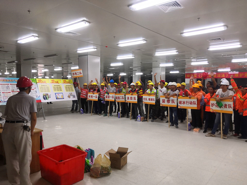 影片播放結束后,緊接著開展的是安全生產知識競賽活動。參與競賽的人員根據不同工種、不同部門分成9支隊伍。競賽內容包括安全生產法律法規(guī)、應急救援、消防、減災防災、勞動保護等多方面知識,競賽形式為舉手搶答。競賽過程中,9支代表隊你追我趕,毫不示弱,戰(zhàn)況十分激烈。選手們的活躍表現不時引來陣陣掌聲和歡笑聲,即使中途突發(fā)工地停電狀況,也未能澆滅大家的熱情,比賽在高漲的氣氛中繼續(xù)進行。此次競賽以寓教于樂的形式對管理人員和一線施工人員進行安全知識普及,除進一步提高其安全防范意識和應對事故的處理能力,還豐富了大家的業(yè)余文化生活,為有效防止安全事故的發(fā)生提供了有利保障。