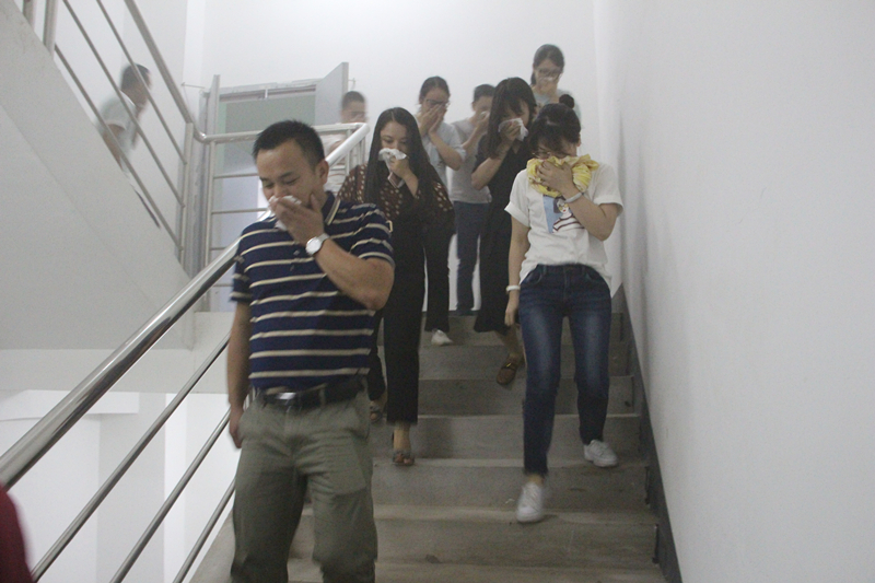 當(dāng)天下午15:00,隨著模擬煙霧的放出,模擬火災(zāi)警報拉響,各參加火災(zāi)疏散演習(xí)的人員按照既定的撤離路線,在工作人員的指揮下迅速撤離“事故”現(xiàn)場,撤離過程中大家紛紛用濕毛巾捂住自己的口鼻,弓著腰沿著墻壁迅速撤離到一樓安全地點(diǎn),整個撤離過程不到2分鐘。經(jīng)過周密的部署和安排,疏散演示實(shí)現(xiàn)了安全、有序、及時撤離的預(yù)期目標(biāo)。消防培訓(xùn)老師對演練效果給予充分肯定,并圍繞消防安全“四個能力”、“四懂四會”為大家講解了消防知識,詳細(xì)介紹了如何撲滅初期火災(zāi)及一些注意事項(xiàng),并重點(diǎn)講解了在辦公人員密集的場所發(fā)生火災(zāi)時如何逃生的知識。