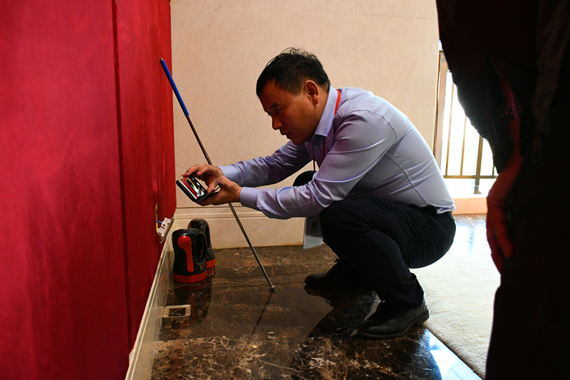 在認真聽取榮鑫公司的介紹后,復(fù)審專家組與使用單位研祥公司及建設(shè)單位綠港集團相關(guān)代表進行了單獨會談,主要了解施工建設(shè)和交付使用中的情況。隨后,復(fù)審專家對裝修現(xiàn)場進行了實地核查,尤其對電源插座內(nèi)外設(shè)置、伸縮縫處理、地面墻面空鼓情況、消防設(shè)備標(biāo)識及開合程度、衛(wèi)生間洗手臺的安裝等裝修細節(jié)展開了細致檢查,并認為各裝修分項都能嚴格按照規(guī)范要求進行施工,裝修質(zhì)量精良。最后,復(fù)審專家還對工程資料進行了檢查,一致認為項目工程資料完善,內(nèi)容分部分項,規(guī)范全面。專家組在復(fù)審總結(jié)中高度贊揚了研祥項目的裝修效果,并充分肯定了榮鑫公司在裝修中對細節(jié)質(zhì)量控制的精細化程度。