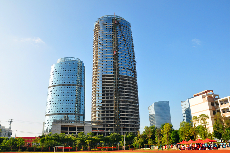 《建設(shè)中的綠港國(guó)際中心》(榮鑫公司 趙志業(yè))圖片說(shuō)明:綠港國(guó)際中心正在做外墻玻璃裝飾施工,在陽(yáng)光的照耀下美麗而雄偉。球場(chǎng)上的運(yùn)動(dòng)員意氣風(fēng)發(fā)。預(yù)示著綠港集團(tuán)充滿活力。