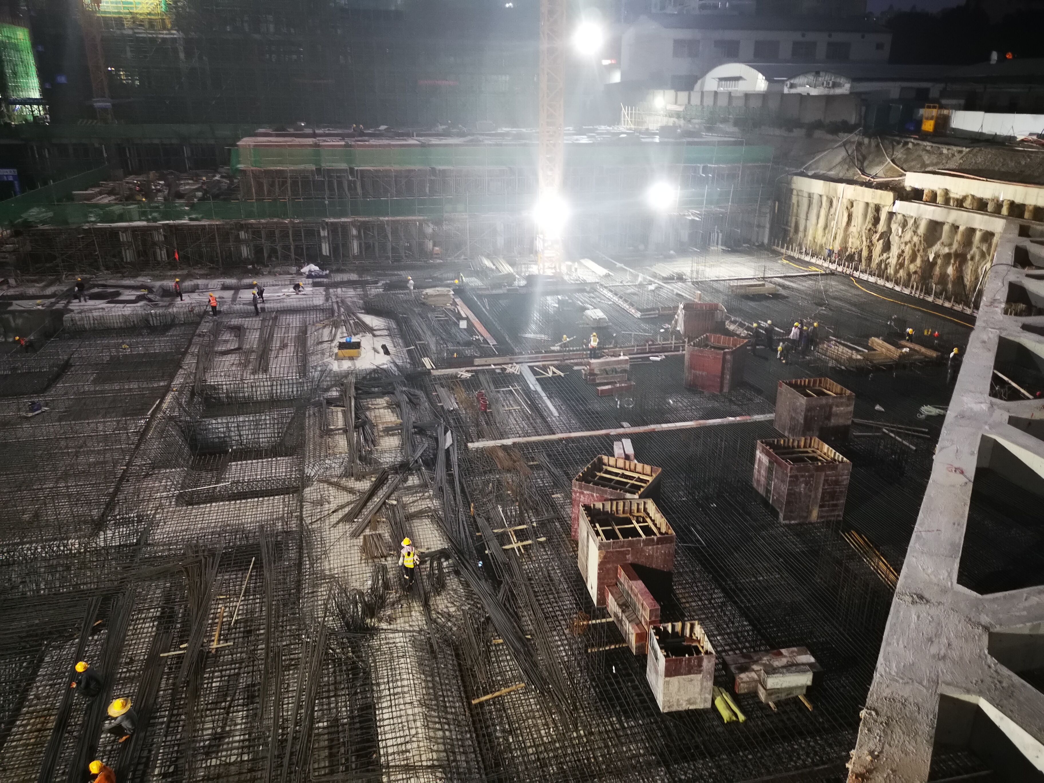 在完成支護樁施工及土方外運工作后,接下來就是緊張的基礎(chǔ)及地下室施工,在剩下不到40天的時間里完成兩層地下室施工,這是一場與時間賽跑的大戰(zhàn)。推進(jìn)小組全體成員頂住壓力,緊盯5月31日預(yù)售節(jié)點目標(biāo),開足馬力全力推進(jìn)項目建設(shè)加速跑。推進(jìn)小組實行每天碰頭會,每周安全生產(chǎn)推進(jìn)會,按照工期節(jié)點倒排施工計劃,層層細(xì)化每日施工任務(wù),持續(xù)加強內(nèi)外溝通。依據(jù)工程進(jìn)展情況,督促施工單位同時展開多個作業(yè)面,增加施工人員及機械設(shè)備的投入,采取倒班等措施搶回時間,保證施工現(xiàn)場做到“見縫插針、動態(tài)管控”。經(jīng)過項目推進(jìn)小組及參建各方2個多月的日夜奮戰(zhàn),項目8#、6#樓于4月12日、5月13日提前完成主體結(jié)構(gòu)封頂;3#樓5月27日提前完成±0.00層達(dá)到預(yù)售節(jié)點;在臨時增加工程量的情況下, 1#樓于6月5日完成集團公司設(shè)定的項目預(yù)售節(jié)點攻堅目標(biāo)。
